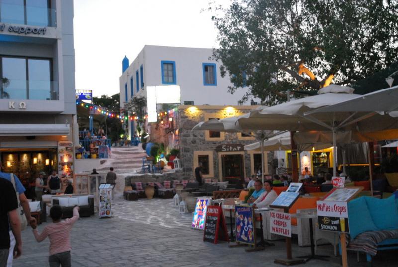 Yemek sonrasında limanda bir gece yürüyüşü yaparak Kos’un eski kent merkezine gittik. Bu eski yerleşim Kos’un ana merkezi. Burası çok şık kafelerin yer aldığı geniş bir meydan.