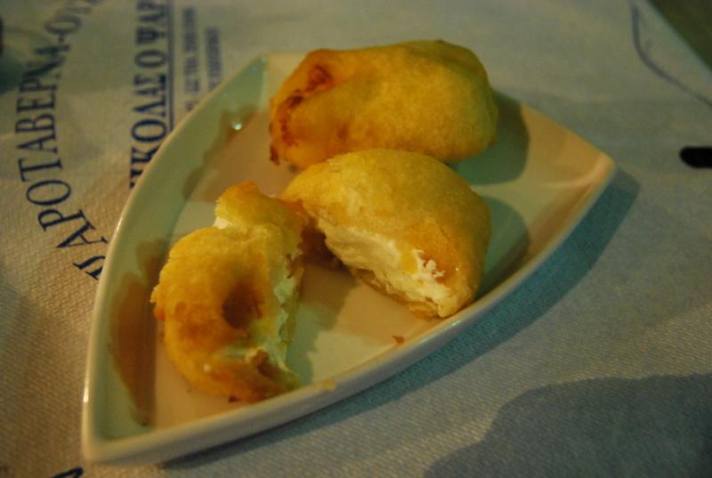 Buradaki bazı restoranlarda kredi kartı geçmediğini de belirtmeliyim. Ama gerek mezeler, gerekse deniz ürünleri nefis. Mesela bu içi krema peynir ve deniz ürünleri dolu bir çeşit kızartma.