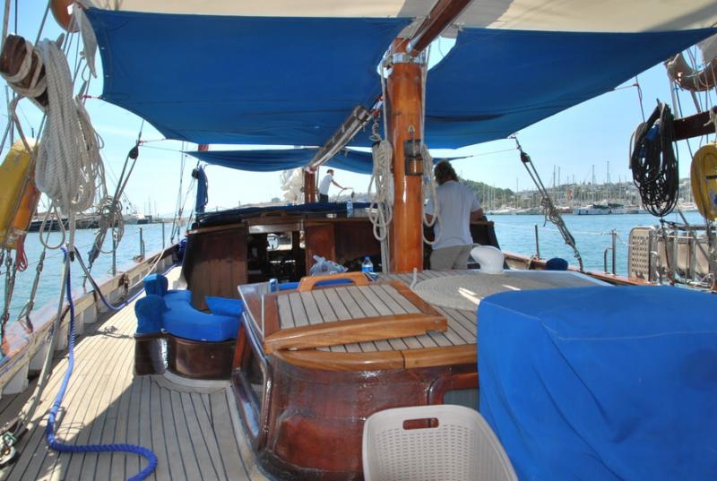 Öğle saatlerinde Bodrum Limanı’ndan ayrılacağız. Ayrılmadan önce bizi iki arkadaşımız teknede ziyarete geldi. Güzel bir kahvaltı yaptıktan sonra arkadaşlarımız bizi uğurladı ve demir aldık.