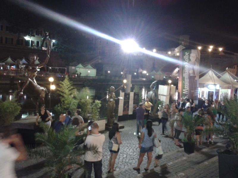 Akşam Roma ayrı bir heyecan, tüm tarihi yerler ve Tiber Nehri kıyıları ve nehir üzerindeki köprüler ışıklandırıldığı için her yer tam bir renk cümbüşü sunuyordu.Ayrıca Roma'nın ortasından geçen Tiber nehri çevresi ve nehir üzerindeki ada gece festivallerine hizmet ediyor, biz gittiğimizde açık hava film festivali vardı, bir tarafta Tiber nehri, diğer tarafta açık havada dev sinema ekranı ağustos sıcağında ayrı bir şölendi.Tiber nehri kıyısı kafeler, barlar, restoranlarla doluydu ve inanın hepsi tıka basa kalabalıktı.Hava kararınca Tiber nehri çevresinde vakit geçirmenizi tavsiye ederim.