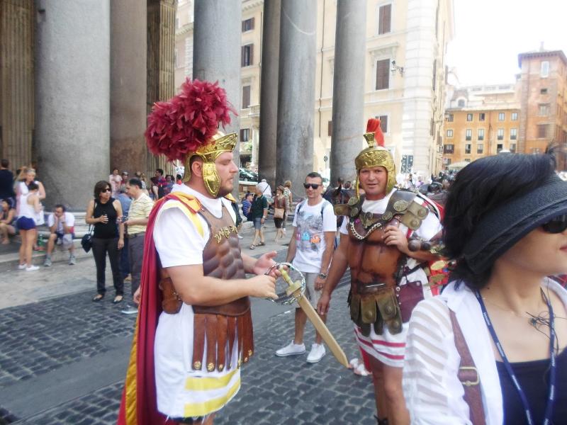 Roma'da Kolezyum dışında diğer ana görülmesi gereken yerlerin çoğu birbirine çok yakın noktada bulunmakta olup bu sayede rahatlıkla Vatikan'ı gezdikten sonra diğer yerlere de yürüyerek ulaşabiliyorsunuz. Şehir dar ve tarihi sokakları ve turist kalabalığı ile ayrı etkileyici bir şehir. Dar sokaklardan, sokakları sağlı sollu kaplamış kafe ve restoranlardan yürüyerek dünyanın en eski tapınaklarından olan Pantheon'a ulaşıyorsunuz. Tapınağın muazzam büyük bir kubbesi var.Tapınak girişinde ise dönemin Roma askeri kıyafetleri ile gladyatörler sizi selamlıyorlar. Bir süre sonra Roma'da tarihi mekanların girişinde Gladyatör giysileri içinde birilerini görmek alışkanlık haline geliyor. Pantheon çevresinde çok sayıda kafe ve restoran bulunmakta olup, Roma'da yemek yeme anlamında sıkıntı yaşamanız imkansız. Her türlü bütçeye hitap eder durumda restoranlar mevcut, bizler İtalya'ya kadar gelmişken geyiği ile pizzacıda kendimizi bulduk. Orta boy pizza ve yanında kolaya 5 euro ödeyerek öğle yemeği işini hallettik. Ama alternatif çok, Akdeniz mutfağı çeşitleri, değişik spagetti menüleri, pizzalar ile Roma'da farklı yemek alternatiflerine ulaşmanız mümkün.
