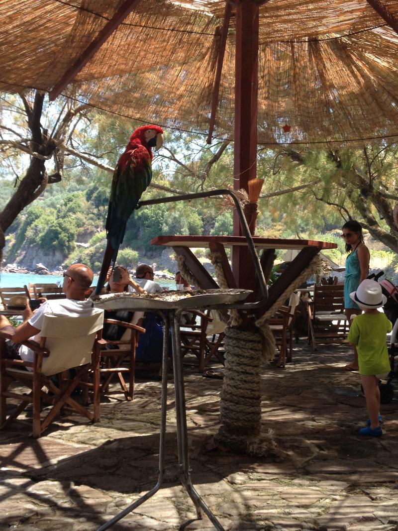 Midilli araştırmalarında hep gördüğümüz Skala Skamnia’ya da bu sefer yolumuzu düşürdük ve öyle iyi etmişiz ki… Sevimli mi sevimli bir balıkçı kasabası, her şey resim gibi… Deniz fenerinin olması gereken yerde minik bir kilise, kilise yanında 2 küçük restoran, karşısında 1-2 kafe var. Yerel kişilerden aldığımız en güzel tavsiyelerden biri de kilisenin hemen yanındaki restoranın deniz ürünlü makarnasının meşhur olduğunun söylenmesi; severseniz kaçırmayın. Hemen karşısında normal bir kafe gibi görünen Kavos Cafe’nin arka bahçesi denize sıfır, huzur dolu ve lezzetli yoğurt tabaklarıyla ünlü. Kavos Cafe’nin asıl sahibi olan ve arka bahçede sizi selamlayan koca papağına “merhaba” demeden dönmeyin.