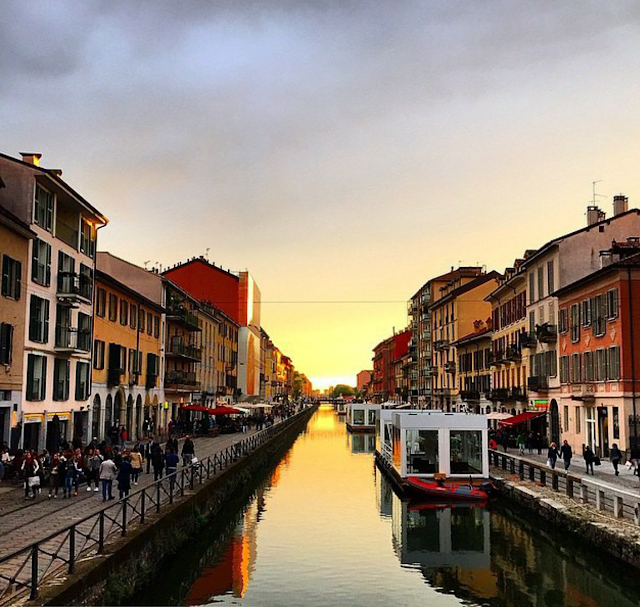 Eğer metro ile gittiyseniz çıkışınız tam Duomo`nu karşısına denk gelecek. Meydana adım attığınız andan itibaren meydandaki seyyar satıcıların ve yankesicilerin hedefi haline geleceğinizi unutmadan buralarda dikkatlice dolaşmakta fayda var.Duomo`da kısa bir tur atıp detaylı gezmeyi sonraki günlere bıraktık çünkü güneşin batışını kaçırmadan Navigli`de olmak istiyordum ve bunun icin haklı sebeplerim vardı :) İlk sebebim : hep fotoğraflarda gördüğüm o gün batımını kendi gözlerimle görmek, ikinci sebebim ise sadece içeceğinizin ücretini ödeyip cafelerde kurulan açık büfelerden dilediğiniz kadar tapas yiyebileceğiniz Aperitivo saatlerini yakalamaktı. (Genelde 19:30-22:00 saatleri arasında oluyor) Navigli Milano`daki kanallar bölgesine verilen isim. Bu kanallar 16. yy'da Milano'yu denizden ulaşabilir kılma amacıyla inşaa ediliyor. Şimdi ise kanalda sadece gezi tekneleri dolaşıyor. Navigli sanat galerileri ve antikacıları ile Milano`nun bohem yüzü haline gelmiş olsa da bu bölgeyi popüler yapan hareketli gece hayatı. Kanal kıyısında sıralanmış pub ve restoranlardan birine girip keyifli vakit geçirebilirsiniz.