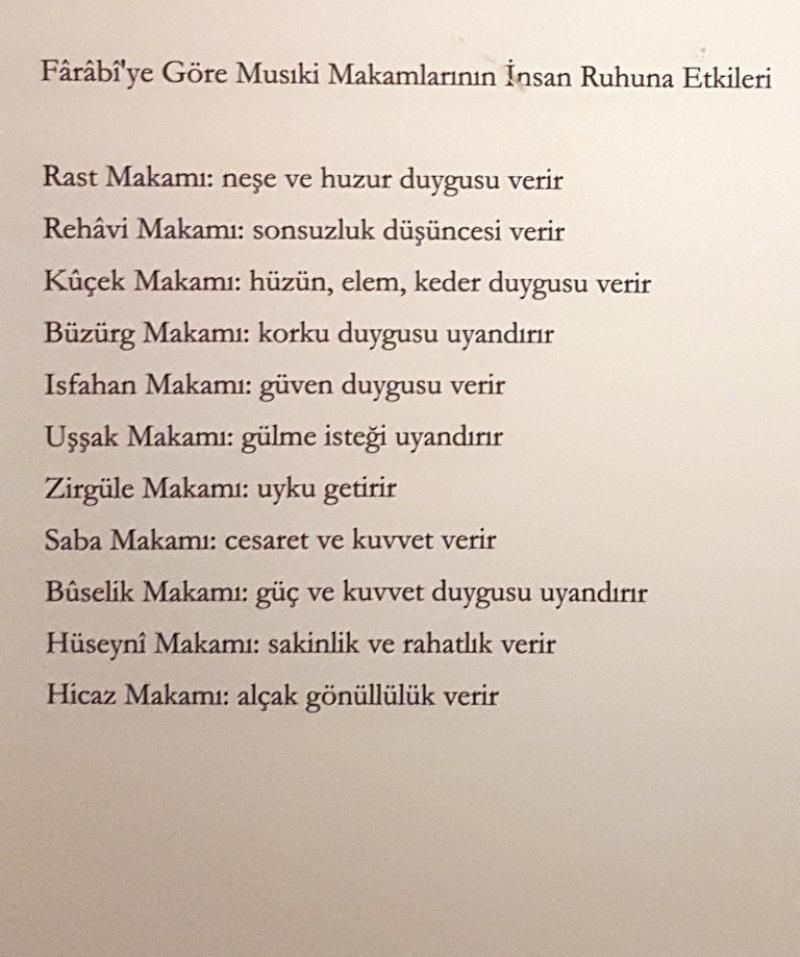 Müzik de burada uygulanan tedavi yöntemleri arasında başı çekiyormuş. Haftanın 3 günü 10 farklı makamla müzikle tedavi uygulanıyormuş. Her müzik makamının da farklı fayda ve etkileri olduğu düşünülüyormuş.