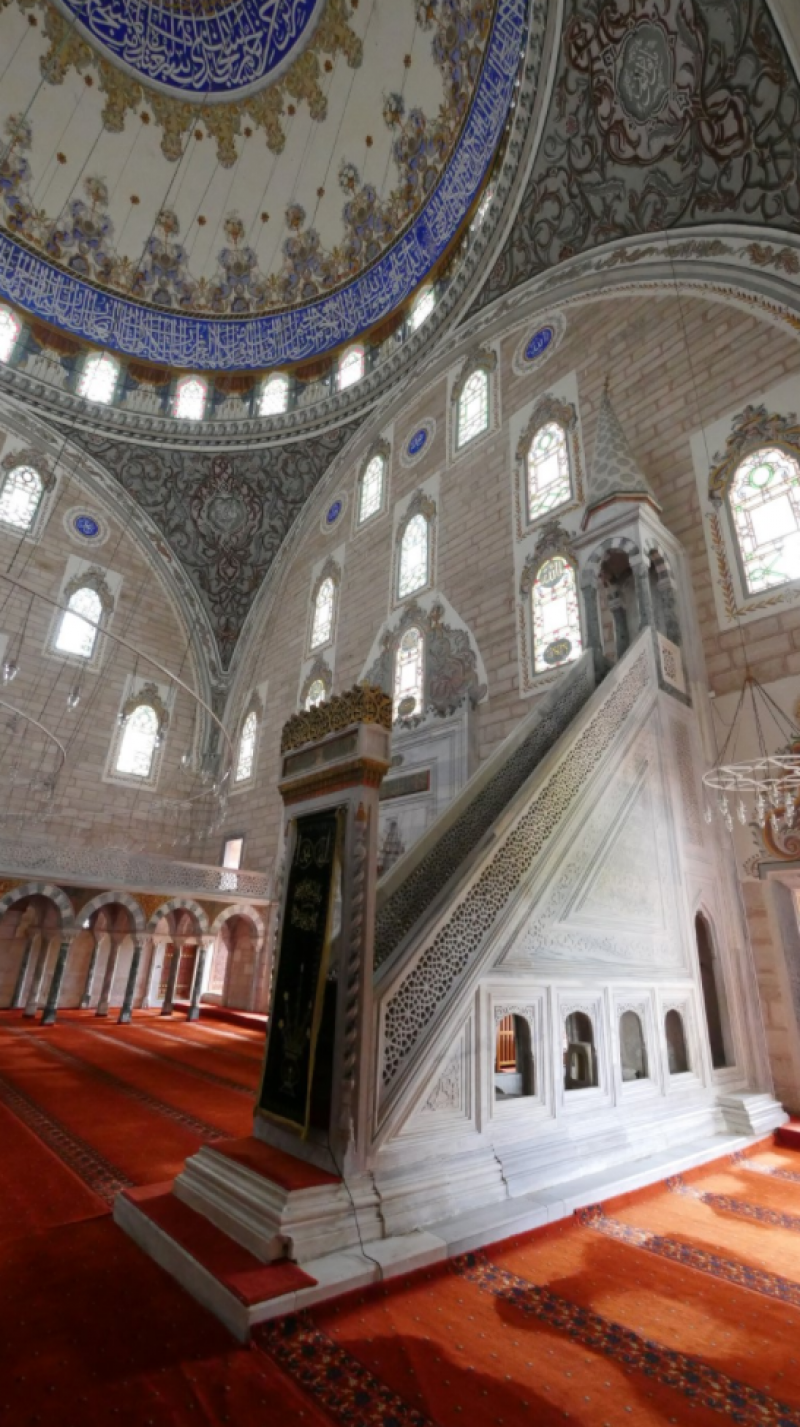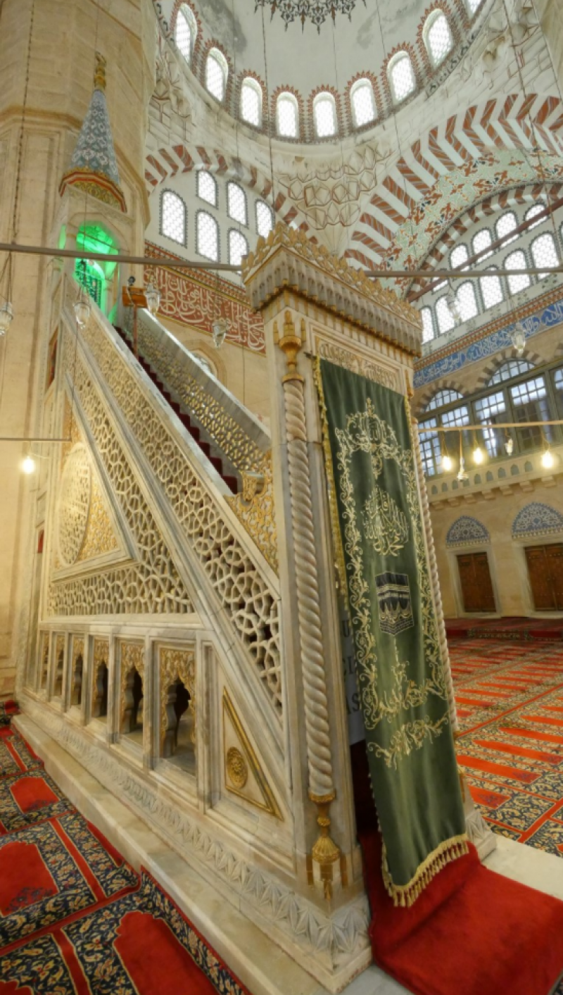 İlerleyince minberin ihtişamından büyüleniyoruz. O da yekpare mermerden yapılmış ve bana bal peteklerini anımsatıyor. Mermeri oyup da böyle bir güzellik yaratmak, muhteşem öyle değil mi?