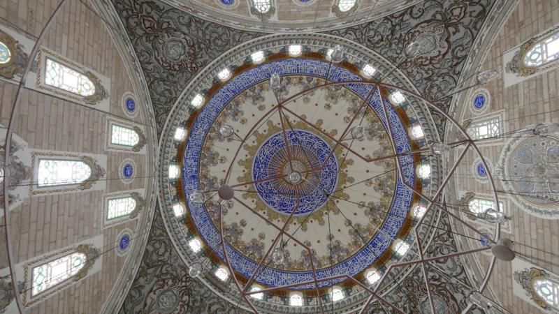 Selimiye Camii’nin içine girme zamanı ama kapı dahi kendisine saatlerce baktıracak güzellikte. Baykuşun suratını anımsatan süslemelere dikkatlice baktığınızda ters laleleri görebilirsiniz. Artık betimleyecek sıfat bulmak daha da zor. Mavi, kırmızı, beyazın güzelliği Edirnekâri, mozaik ve hat sanatıyla bütünleşmiş.