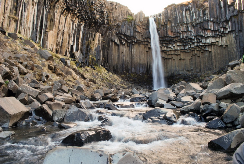 Biz ise 1 numaralı otobanı takip ederek, Skaftafell’e devam ettik. Ulusal Parkın girişinde bir tesis ve kamping alanı bulunuyor. Alışveriş imkanın da olduğu tesisin çevresi küçük bir müze gibi. Hem bölge hakkında bilgi var, hem de yürüyüş rotaları ve uzaklıkları ile ilgili bilgi mevcut. En üzücü şey ise 1960’larda bölgeye gelen ve bir daha bulunamayan İngiliz dağcıların, 1990’larda bulunabilen malzemeleri. Yürüyüş için ise kimseden yardım almaya gerek yok. Uzaklık ve güzergah son derece belli ve her yerde tabelalar var. Bizim ilk yürüyüşümüz yaklaşık 3,5 kilometre uzaklıktaki Svartifoss’du. Türkçe Kara Şelale anlamına gelen ve 20 metre yüksekliğe sahip Svartifoss, ismini şelaleyi çevreleyen siyah bazalt lav sütunlarından alıyor.
