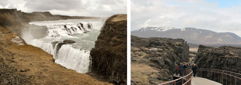 Bir sonraki günkü gezi planımız ise Golden Circle. Her gün iki farklı firma tarafından yapılan turun başlangıcı Reykjavik. Gullfoss, gayzer ve Þingvellir gezildikten sonra Reykjavik’e geri dönülüyor. İsmini de güzergah sırasında yaptığı dairesel rotadan alıyor. Gullfoss, “altın şelale” anlamına geliyor. Diğer şelaleler gibi Gullfoss da buzullardan besleniyor. Üzerindeki akıntı çok güçlü. Gürül gürül bir sesi var. İnsan yanındaki duymakta zorlanıyor.