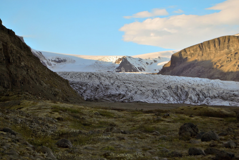 Bu yürüyüşün ardından tesise geri dönüp, ters istikametteki Skaftafellsjökull buzuluna gittik. Jökull İzlandaca buzul demek ve adada 5 büyük buzul bulunuyor. Skaftafellsjökull ise buzul yürüyüşlerinin yapıldığı turistik bir bölge. Çok geç saatte gitmediğiniz takdirde biri ile karşılaşmanız kaçınılmaz.