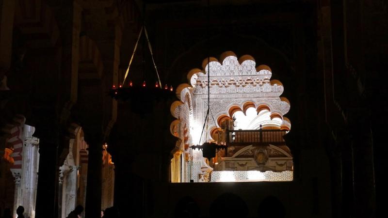 Sütunlar değil sadece sizi büyüleyen, yer döşemesindeki ahşap ve mermerler, duvarlardaki oymalar, işlemeler ve mihrap... At nalı şeklindeki mihrap da caminin farklılığını gözler önüne seriyor. Sonra biraz ilerlediğinizde Hristiyan mimarisinin o altın varaklı ihtişamıyla karşılaşıyorsunuz. O kısımda sütunlar azaltılmış ve İslam süslemeleri yerlerini yaldızlı Hristiyan süslemelerine bırakmış.