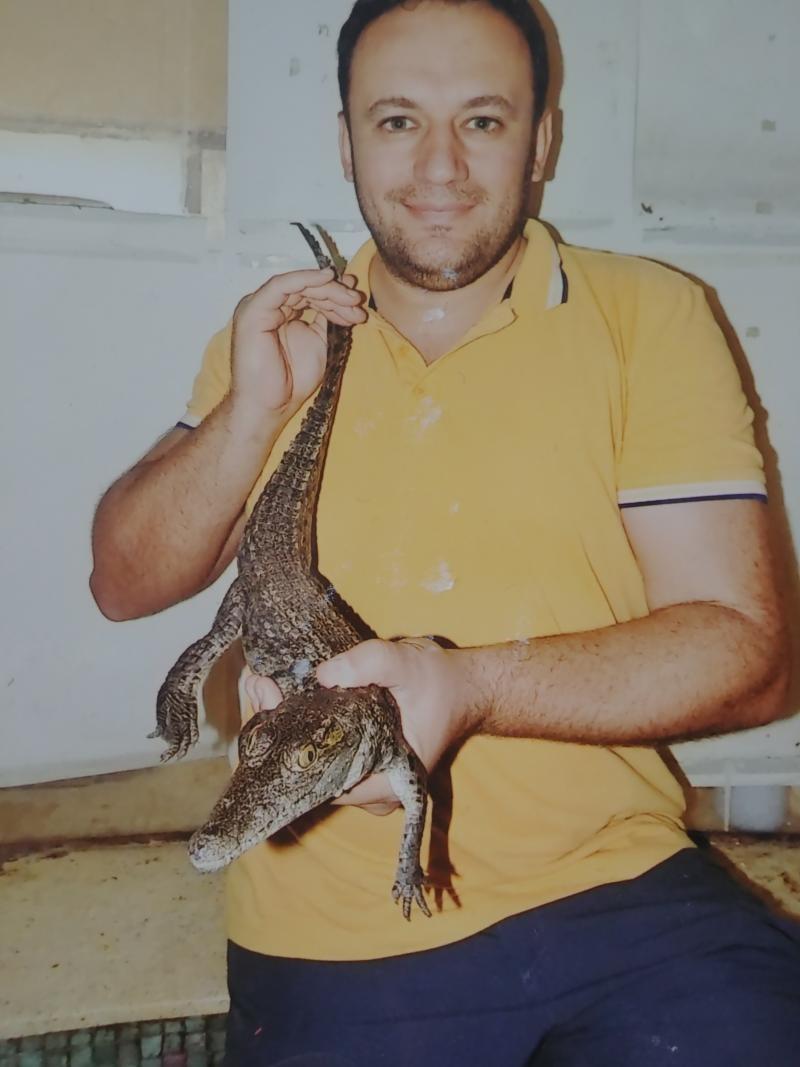Oradan hızla uzaklaşırken aklıma timsah geldi çünkü bir yazıda timsahla da fotoğraf çekildiğini okumuştum. Timsahları buldum, giriş için 10 LE verip sürüngen alanına girdim ve girer girmez bir fotoğrafçı yanıma gelip “timsahla fotoğraf ister misin?” diye sordu. “İsterim ama ne kadar sürede çıkar?” dedim “sixteen minute” dedi. “10 dakikada çıkar mı?” dedim, “yes yes, sixteen minutes” dedi. Terraryumdan bir yavru timsah çıkarıp getirdi bakıcı bir elimle kuyruğunu bir elimle boynunu tutup poz verdim. Birden çok fotoğraf çekmek istedi ama “yeterli teşekkür ederim” dedim. Fotoğraf için 25 bakıcı için 5 toplam 30 LE (6 TL) verdim. Bana bir fiş verdi ve “ilerideki fotoğraf dükkânından alacaksın” dedi. Tamam, dedim biraz daha terraryumda gezineyim vakit geçsin diyerek başladım gezmeye…