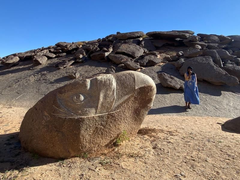 Afrika kıtasının en yüksek (600 m) granit monoliti “Ben Amera” Monolitin eteğinde kurulmuş kampımızdayız. Müthiş manzaralar sunan kum tepecikleri oluşumları üzerinde ayak izlerimizi bırakarak yürümek çok keyifli... Konaklayacağımız geleneksel çadırlarımız önünde yemeğimizi yedikten sonra personelin yaktığı ateş etrafında bize yöresel çalgılar eşliğinde şarkılar söylerken biz de kum üzerinde dans ediyor, veda akşamı yaşıyoruz. Sabah, 1999 da ünlü sanatçıların, milenyum anısına Ben Amara “Aisha” nın eteğindeki kayalara yaptıkları harika oyma resimleri fotoğraflıyoruz.