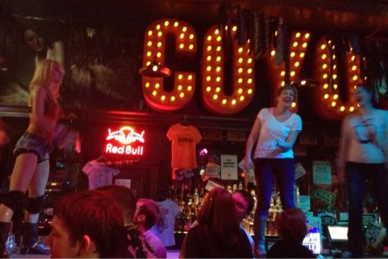 Yemek sonrası Kamergensky nin devamında olan Kuznetsky Most Caddesi’ndeki meşhur bar Coyote Ugly'ye gidiyoruz. Kapıdaki hayvani bodyguardların tavırları oldukça uyuz. Bunlar kesin safkan Rus! "Aslında sizi içeri alasımız hiç yok ama şu an bahane bulamadık girin bari" bakışları altında içeri giriyoruz.