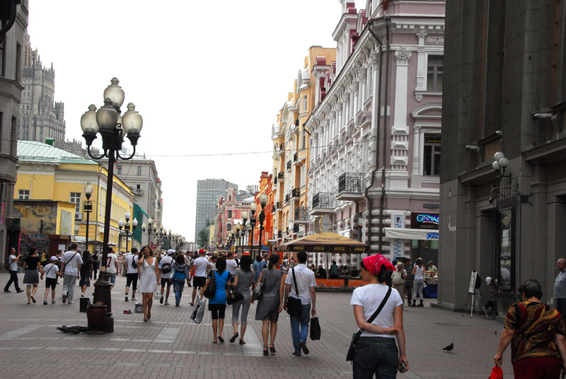 Moskova’da çok çeşitli mimari yapı bir arada bulunuyor… Bir tarafta görkemli kiliseler… Diğer tarafta 1917 devriminden sonra varlıklı kimselerin yaptırmış olduğu sütunlu girişleri olan heybetli evler… Ayrıca Moskova Üniversitesi’nin de dahil olduğu muhteşem göktelenler insanları kendine hayran bırakmakta… Bu arada bir bilgiyi aktarmakta fayda görüyorum, hani bir gün bizim de aklımıza gelir diye… Şöyle ki; tarihi değeri olan binaların bulunduğu birkaç caddenin genişletilmesi gerektiğinde binaları yıkmak yerine temellerinden keserek birkaç metre geriye taşımışlar ve caddeleri, yapıları ziyan etmeden böyle genişletmişler… Ayrıca bir bina restore edileceği zaman görüntü kirliliği yaratmamak için binanın birebir resminin bulunduğu bir kamuflaj örtü ile bina örtülüyor ve içeride tadilat gerçekleşirken etrafa rahatsızlık verilmemiş oluyor…