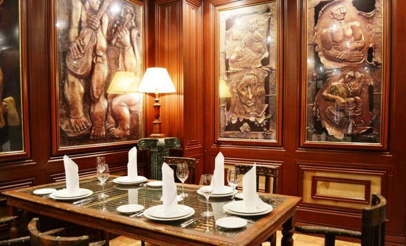 Restoran daha girişinden çok hoş, güzel bir kapıdan girerken sizi elinde bir palet ve resim tutan bir heykel karşılıyor ama bu bile içerideki güzelliğin habercisi olmadı.
