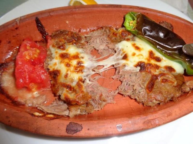 Koyun eti iyice dövülerek sinirlerinden, yağından ayrılıyor. İlik gibi olunca, baharatla harmanlanarak iyice dinlendirildikten sonra güveçlere basılıyor. Fırında pişiriliyor. Yalnız orijinal versiyonunda, üzerinde kaşar peyniri yok. Bunlar koymuşlar. Bence uymamış. Kendi yaptıkları yufka ekmeği ile servis ediyorlar. Güzeldi. Ayran, malum uyku veriyor. O yüzden su içtim.