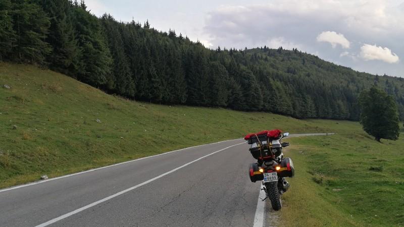 Tarlaların arasından geçtim, madem o da var, tren yolunu da kullanayım dedim. Ardından önce bozuk sonra nispeten iyi durumdaki, kuş uçmaz kervan geçmez, virajlı asfalt yollarda sürdüm. Kuş uçmaz derken, bir ara bir baktım tepemde yırtıcı bir kuş. Az sonra ilk defa devriye atan bir polis arabası gördüm, şaşırdım. Derken, bu tenhalığın içinde, küçük bir köyden geçtim. Geçerken bir binanın üstünde NATO bayrağı gördüm; bu polise bir açıklama oluyordu. Sonra asfaltı güzel, yeşilliği gani, virajlı orman yolları başladı.