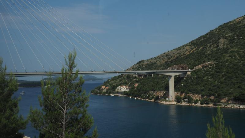Dubrovnik’e gemi ile gelirseniz limana girerken ve çıkarken fotoğraf makinelerinizle birlikte güvertede hazır olun, manzara çok keyifli. Gemi Dubrovnik’in sembolü olmuş olan çelik halatlı köprünün yakınındaki limana yanaşıyor. 2002 yapımlı köprüye eski belediye başkanı Fraya Tujman’ın adı verilmiş. Bu köprü 40 bin metrelik mesafeyi 518 metreye indirmiş. 14 milyon dolara mal edilen köprü, halk arasında çeşitli şaibelere yol açmış (14 milyon dolar nedir ki, biz Türklerin dişinin kovuğuna yetmez.)