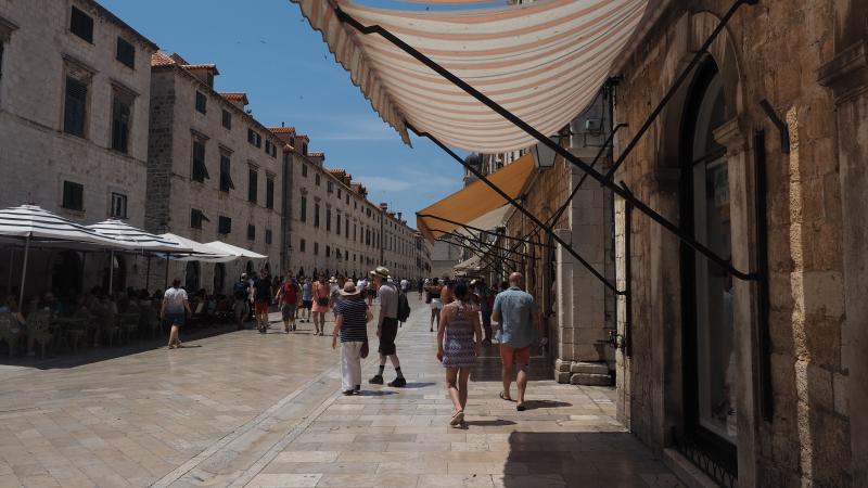 Stradun Caddesi boyunca sıralanan binalar en fazla üç katlı. Hepsinin alt katları hediyelik eşya satan mağazalarla dolu. 1667’deki büyük depremden sonra şehrin belediye başkanı tüm binaların dış cephelerinin aynı yapılması kuralını getirmiş. Ancak orada yaşayan bazı zenginler zenginliklerinin ölçüsünü dış cepheye yansıtmak istemişler, bu talep üzerine başkan binaların dış yüzeyine yalnızca aile arması işlenmesine müsaade etmiş. Bu yüzden cadde üzerinde bazı bina yüzlerinde armalar görüyorsunuz.