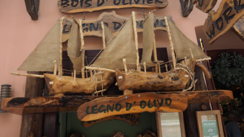 Katakolon’da zeytin ağacından yapılan hediyelik objeler bizim çok ilgimizi çekti. Zeytin ağacının deseni çok güzel. Ahşap obje sevenlerin ilgi duyacağına eminim.