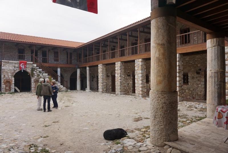 Belediye yokuşundan yukarı çıkıyoruz, restore edilmiş güzel bir yapı çıkıyor karşımıza. Büyük bir kervansaray olan Çöllüoğlu Hanı 1719 yılına tarihleniyor. Han; tarihi boyunca kentin dini, ticari ve idari merkezi olmuş. Taş döşeli avlusuna, avlunun etrafındaki ve üst kattaki odalara geçişler kemerlerle sağlanmış.