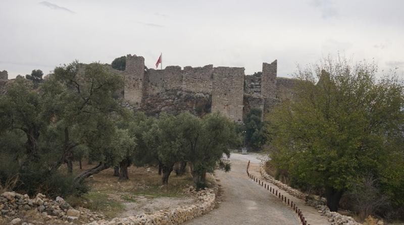 Bodrum - Milas - Yatağan ayrımında, tepede heybetle yükselen ve Milas Ovası’na hâkim bir plato üzerindeki kaleye çıkıyoruz.