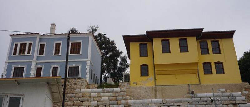 Belediye yokuşundan caddeye inerken sağlı sollu çok sayıda tarihî evden bazıları harap, bazıları ise çok güzel restore edilmiş.