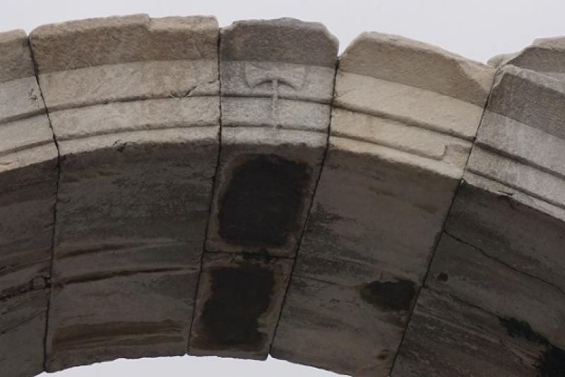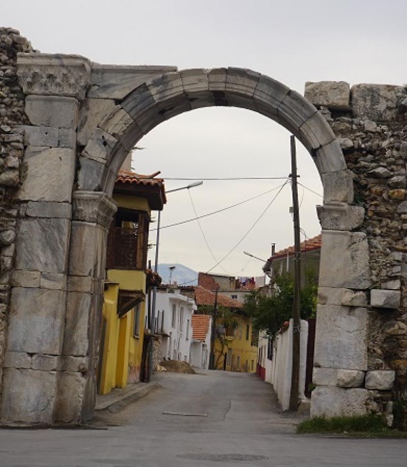 Kentin eski surları arasındaki kapı kemeri, bugüne ulaşan tek kalıntı. “Baltalı Kapı” adını kemerinin kilit taşı üzerindeki çift yüzlü balta motifinden almış. Tarihi MÖ 1. yüzyıla kadar gitmekte. Hıristiyanlık devrinin başlarında şehrin doğusundaki dağlardan su getiren kemerler bu kapıya bağlanmış.