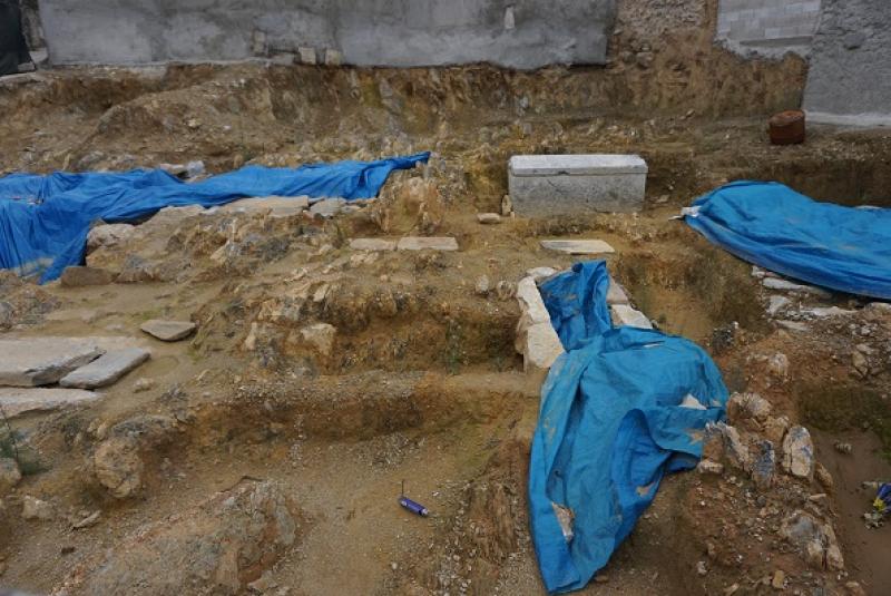 Kemerden geçerek Baltalı Kapı Caddesi’nden yürüyoruz. Sağda tam bir yıl önce bir inşaatın temel kazısı sırasında bulunan, Helenistik döneme ait olduğu belirlenen bir lahit bulunur. Lahite yaklaşık iki metre mesafede bir çocuk mezarı bulunurken bir başka yapının da birden çok mezarın yer aldığı, 2.400 yıllık, son derece zengin buluntuları olan bir oda mezar olduğu anlaşılır. Oda mezarın özenli taş işçiliği, mimari yapısı ve buluntularından Karia bölgesi Satrap sülalesi olan Hekotomnidler Dönemi'nde yaşamış önemli bir aileye ait olduğu anlaşılmıştır. Ayrıca bu zengin bir aileye ait olduğu düşünülen 103 eser de gün yüzüne çıkarılmış.