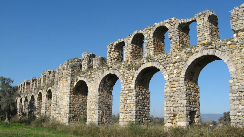Milas’ın doğusundaki ovada uzanan iki katlı Su Kemerleri erken Bizans dönemine ait. Bazı bölümleri halen ayakta olmakla birlikte büyük kısmı yıkılmış.