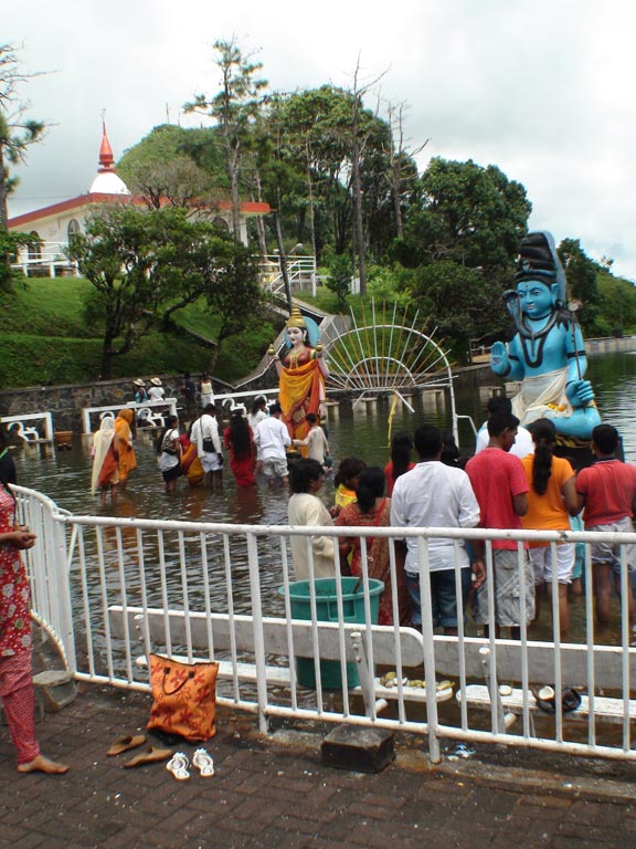 Buradan sonra Mare au Vacaus adlı kutsal gölü ve oradaki yoldan gelirken 35 metre yükseklikteki Şiva heykelini gördük. Burada Hint tapınağını ziyaret ettik. Tam bir bayram yeri gibiydi. Sanki Hindistan’ın küçük bir modeli gibiydi. İnsanlar rengarenk giyinmişler, getirdikleri ananas, hindistan cevizi, muz gibi yiyecekleri önce kutsuyorlar ve sonra tanrılarına sunuyorlar, daha sonra dualarını yaparak tapınıyorlardı. Etraftaki maymunlar, babunlar ziyaretçilerin getirdikleri muzları yiyorlardı.