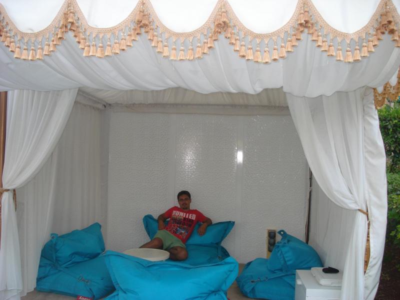 Dubai’nin bütün fotoğraflarında gördüğünüz palmiye şeklindeki suni adanın olduğu yer burası. Neredeyse bütün yabancıların yerleşim bölgesi. Palmiyenin dallarında Hollywood yıldızlarının malikaneleri, villaları; ucunda da en lüksün tanımını tek başına yapan Atlantis Otel var, yani bizim konakladığımız otel.