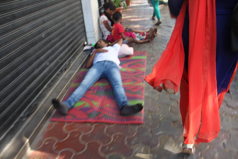 Birkaç tane taksi firması var, ben Colaba bölgesine gidecektim, bir tanesi tarifeyi gösterdi 1.200 Rupe idi, oysa ki önceden araştırmıştım 700/800 Rupe olması gerekiyordu, nitekim yanındaki stand da bulunan diğer firma elemanı 100 Rupi kendilerine 600 Rupe de taksiye olmak üzere 700 Rupeye otelime kadar gidebileceğimi söyledi ve bir fiş düzenledi, çıkışta kırmızı renkli taksilerin bulunduğu büyük bir durak olduğunu ve verdiği fiş ile bu taksilerine binebileceğimi söyledi ( 1 usd= 68 inr). Havaalanı ile Colaba arası yaklaşık yarım saat sürüyor, hemen aracımıza bindik, hava henüz aydınlanmamıştı, yollar da oldukça tenhaydı, sonra şehir merkezine yaklaşınca biraz canlanma görülmeye başladı, ayrıca yol kenarlarında sokaklarda yatanları görmek de garibime gitti, ama her ne kadar daha önce bazı yerlerde okuduğum gibi çok büyük oranda bir nüfus sokaklarda yaşamıyor. Tamam ara sokaklarda ortalarda yatanlar, yaşayanlar var ama çok da rahatsız edici değildi.