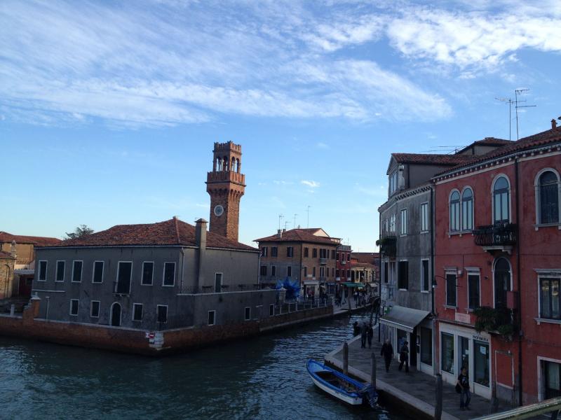 Öncelikle Murano Adası’na gittik, etrafı iyice gezdik. Zaten küçücük bir yerdi; özellikle cam işçiliğinin gelişmiş olduğu ve Ortaçağ’dan kalma tarih kokan ilgi çekici yapıların olduğu, küçük mü küçük şirin mi şirin bir adaydı burası.