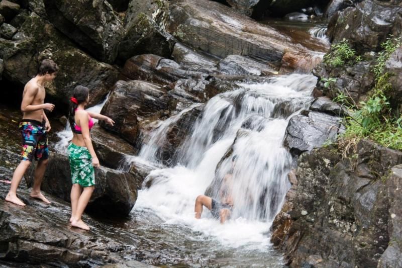 Yemekten sonra yine dökülüyoruz yollara, Sri Lanka’nın en yüksek tepesinin olduğu Nuwara Eliya şehri bir sonraki duruş noktamız. Yol büküle büküle çay tarlalarının arasından ilerliyor. Yemyeşilin ortasındayız o kadar güzel ki. Namal arada çocukların aklına giriyor, şelalelerden birine girmeye karar veriyorlar. Hava yukarı doğru gittikçe daha da soğuyor, şelaleyi düşünmek bile istemiyorum ama bizimkiler çok hevesli. Sonuç fotoğraflardaki gibi… Eğlence tavan, çocuklar mest : )