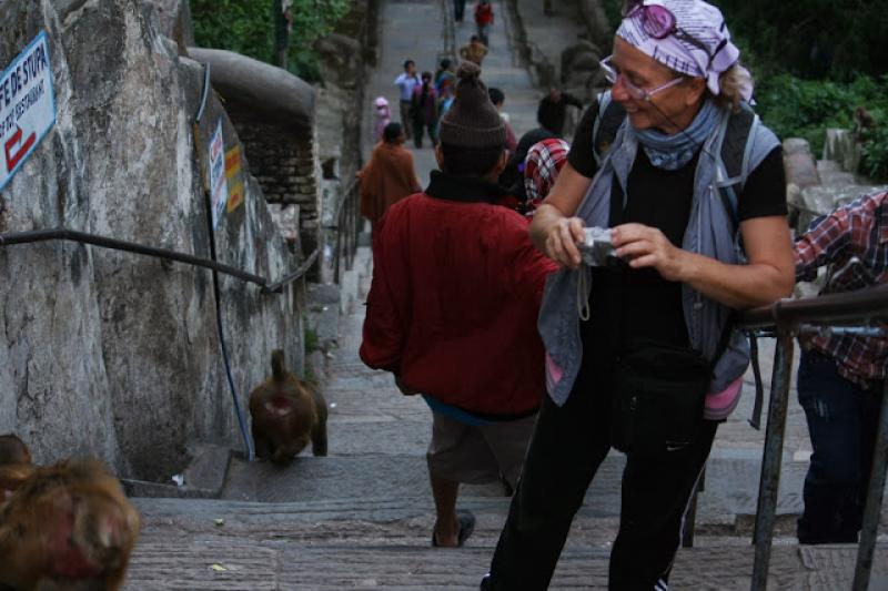 Kathmandu'da ilk günü metrekareye 30 kişi düşen Thamel caddesini tanımaya calışmakla geçirdik. Otelden adım attığımız anda sanki her an bir yerden kafamıza bir at, eşşek, inek yada rikşa (bisiklet süren Nepalli'lerin genel adı) düşebilir yada arkadan bir şey çarpabilir hissi tüm gün içimizdeydi. Bir kaç taksi değiştirdikten sonra artık taksilerden korkmaz olmuştuk Çünkü dünyanın başka hiçbir yerinde bir arabayı kimse bir Nepalli kadar iyi kullanamıyordur bundan emindik. Ortada bir yol yoktu ancak gidiyorduk.. Bu duruma hala şaşkınım, 'nasıl' sorularımdan biridir kendisi.