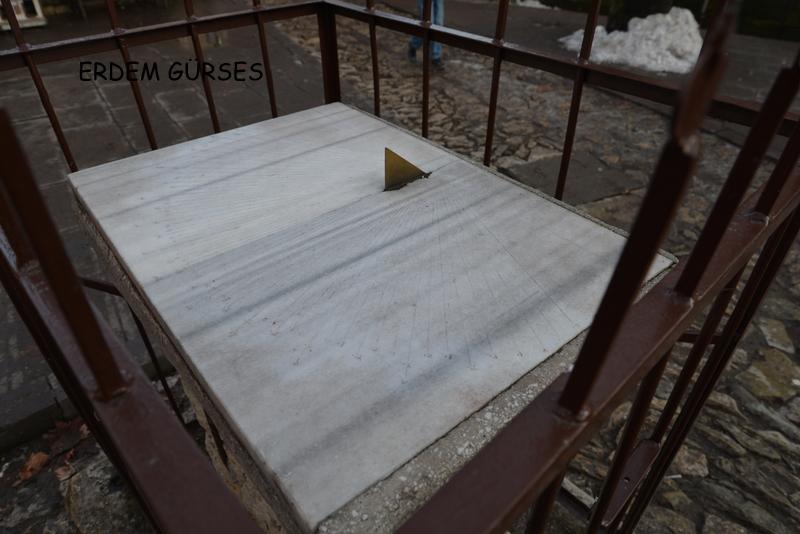 Saat başlarını gösteren çizgiler biraz daha uzun ve ok işaretiyle sona ermekte. Bunların arasında bulunan “10’ar” dakikalık zaman dilimlerini işaret eden çizgiler ise kısadır. (+) sabah 6.40 ile akşam 5.20 arasındaki zamanı gösteren basit tip bu yatay güneş saatinin rakamları Arapça. Burada başlangıç ve bitiş saatlerini sağındaki ve solundaki saat başlarına göre değerlendirmek gerekmekte. Bu güneş saatinde kış, yaz ve bahar, güz dönemlerini gösteren eğriler ya da hatlar bulunmadığından “basit tip yatay güneş saati” grubunda olduğu belirtilmekte uzmanlar tarafından. Anılan saatin 19. yüzyıl ortalarında yapıldığı sanılmakta aynı zamanda.