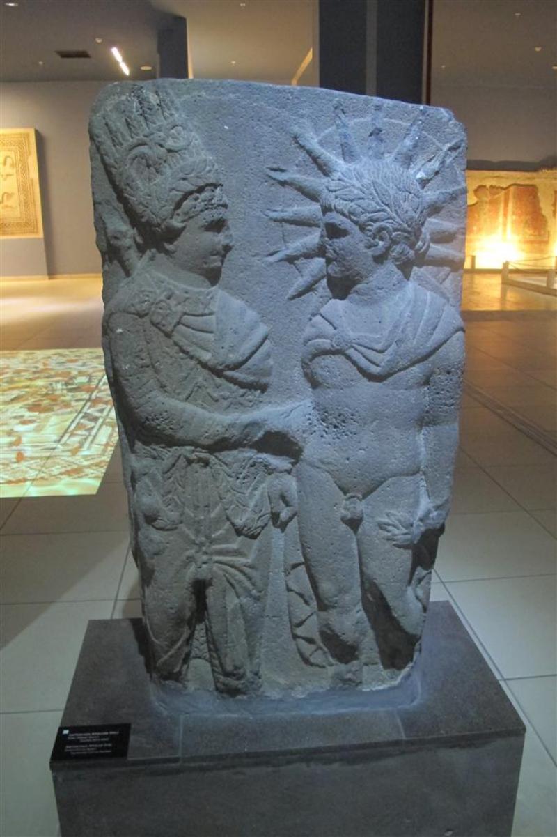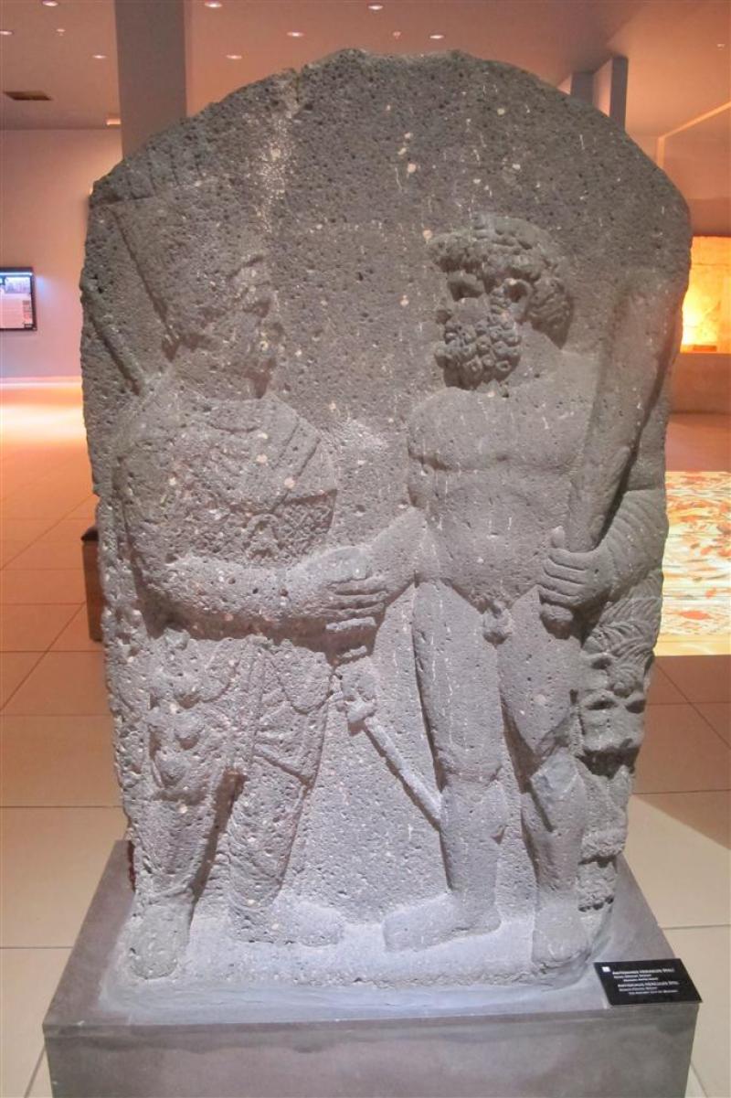 İçeriye ilk girdiğinizde ise Kommagene Kralı 1. Antiokhos'un hükümdarlığını pekiştirmek için ve yönetim planını oluşturmak amacı ile yaptırdığı, Herakles ve Helios betimli anlaşma stelleri bulunmakta. Bu stellerin benzerlerini Adıyaman-Nemrut bölgesinde de görmüştüm. Nemrut Milli Park içinde yer alan Arsemia Ören yerinde bu steller ve yazıtlar karşısında dilimi yutmuştum.