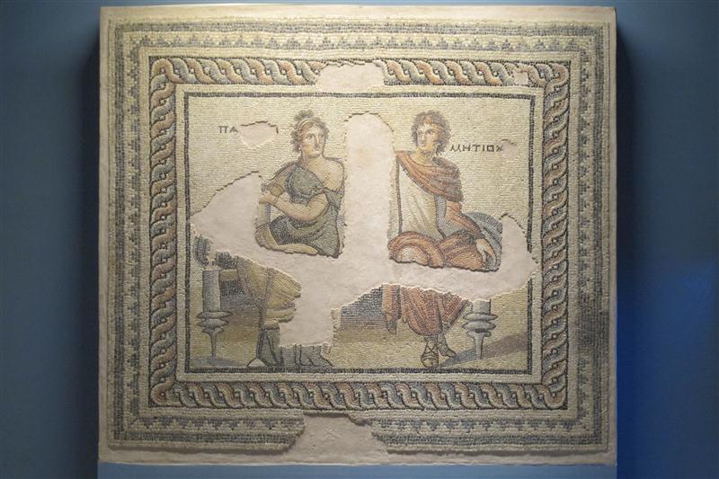 227*257 cm. Zeugma villaları taban mozaiklerinden biri. Erken Roma dönemine ait. 1993 yılında bulunmuş. Mozaikte yer alan orta kısımlar eser kaçakçıları tarafından çalınmış. 2000 yılında çalınan parçaların ABD'nin Houston kentinde Rice Üniversitesi Menil koleksiyonunda olduğu saptanmış ve Kültür Bakanlığı girişimiyle ülkemize iadesi yaptırılmış.