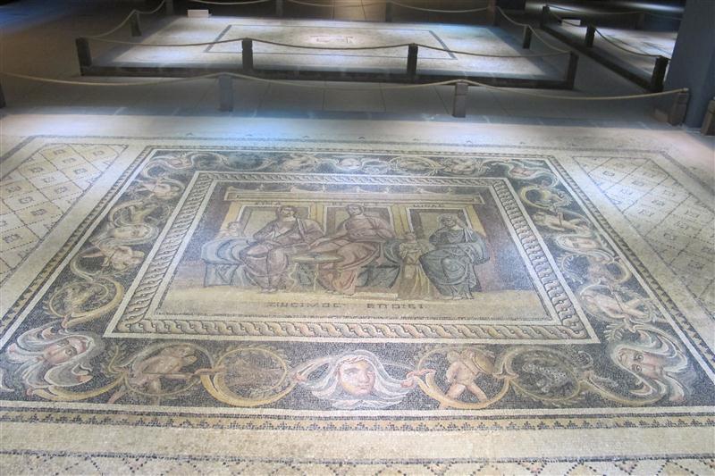 460*570 cm. M.S. 2. yüzyıl yapımı. Çok yüksek kalitede yapılmış olan bu mozaik, bulunan en iyi korunmuş mozaiklerden biri. Aşağıda yazan yazı mozaiği yapan ustanın adı Zozimos, üstteki yazıda ise Kahvaltı Sofrası yazmakta.