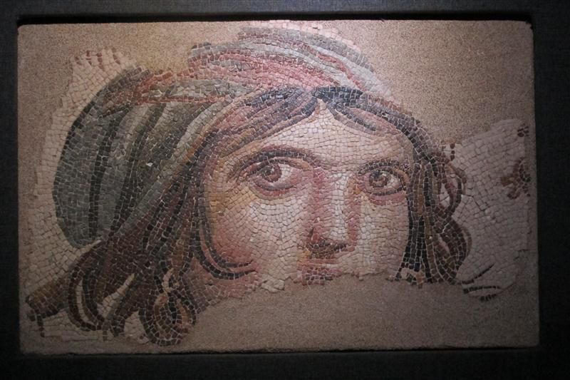 Zeugma Antik Kenti'ndeki Menad Villası olarak adlandırılan villanın taban mozaiği. 1998 yılında bulunmuş. M.S. 2. yüzyılda yapılmış. Gözleri 360 derece etrafına bakabilmekte. İlk bulunduğu zaman kimliği konusunda bir karara varılamamış ama sonraki incelemelerde başının yanındaki asma filizlerinden dolayı Dionysos'un şenliklerinde yer alan Menadlar'dan biri olduğu anlaşılmış ve Çingene Kızı Menad olarak adlandırılmış.
