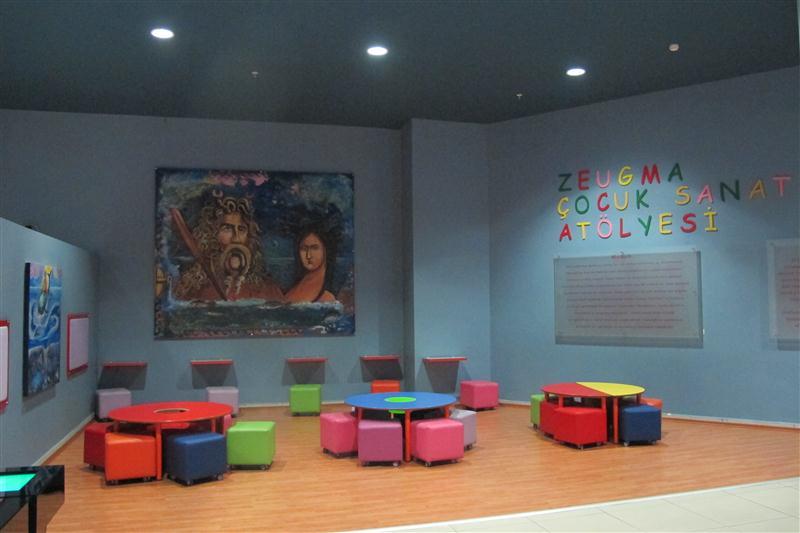 Bu stellerin hemen yanında ise çok hoşuma giden ve ufak ziyaretçilere müze ve tarih sevgisi aşılayan bir uygulama var, Zeugma Çocuk Sanat Atölyesi. Ufaklıklar hem eğlenerek mozaik yapımını öğreniyor ve bilgi alıyor hem de Zeugma Antik Kenti'ni konu alan filmi izleyebiliyor. Bu uygulamayı Mardin'de de Mardin Müzesi bahçesinde görmüştüm. Çok ilginç, İstanbul'da henüz böyle bir uygulama sunan bir müze görmedim.