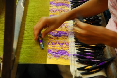 1 m x 20 cm bir kumaş için 70 bin adet Lotus çiçeği gövdesi (sopası) gerekiyor. Bu dokumaların metresi 100 Dolar.