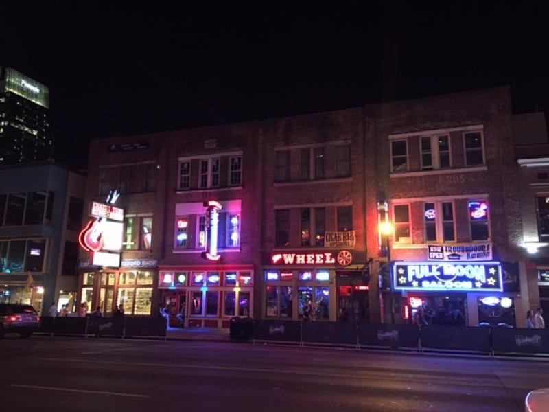 Nehre paralel giden caddeyi dik kesen Broadway Caddesi ise Country müzik yapan canlı müzik barları ile şehrin kalbi. Nehir tarafından geliyorsanız bu caddeyi kaçırmanız mümkün değil, hemen girişteki ışıklı devasa gitar hemen dikkatinizi çekecek, Nashville Hard Rock Cafe'nin reklam panosu. Özellikle gece gidilen cadde, New York Times Square'i aratmayan, ışıklı tabela ve panolarla ışıl ışıl, rengârenk. Cadde ve caddeye açılan sokaklarda sayısız barların hemen hepsinde canlı orkestra ya da sadece bir gitar eşliğinde her zevke uygun Country müzik ziyafeti bulmak mümkün; tıpkı eski New Orleans gibi bir barda karşınıza her an ünlü bir Country müziğin ünlü bir sanatçısı çıkabilir. Bazı barların kapısında kuyruk görebilirsiniz ya da orada çalabilmek için sabırla bekleyen amatör sanatçılar. Burada çok yapılan bir espri de bazı gençlerin ünlü olabilmek uğruna, bu barlarda çalıp para kazanmak bir yana neredeyse üstüne para bile verebileceklerini söylüyor. Hangi bara gidelim diye sorarsanız, bence bar kapılarının önünden geçerken içeride çalan müziği dinleyerek tarzınıza uygun müziği olan bara karar verin derim.