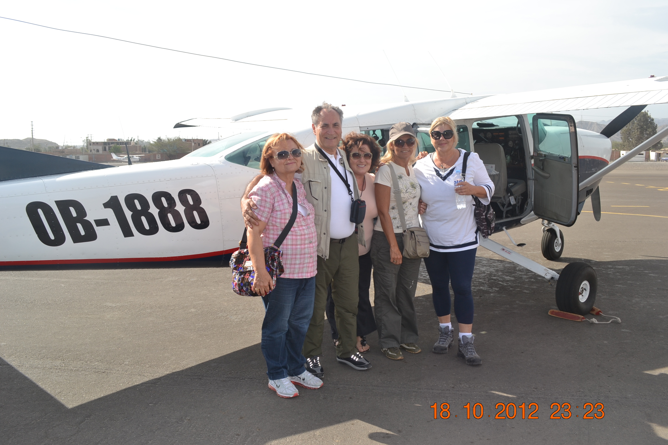 ICA şehrinden otobüsle kısa bir yolculuktan sonra Nazca Şekilleri görmek için, Nazca Aerodom'a geliyoruz, kasabanın dışındaki bu küçük havalimanından kalkan 4 kişilik pervaneli uçaklarla çölün üzerinde 1 saate yakın uçtuk.