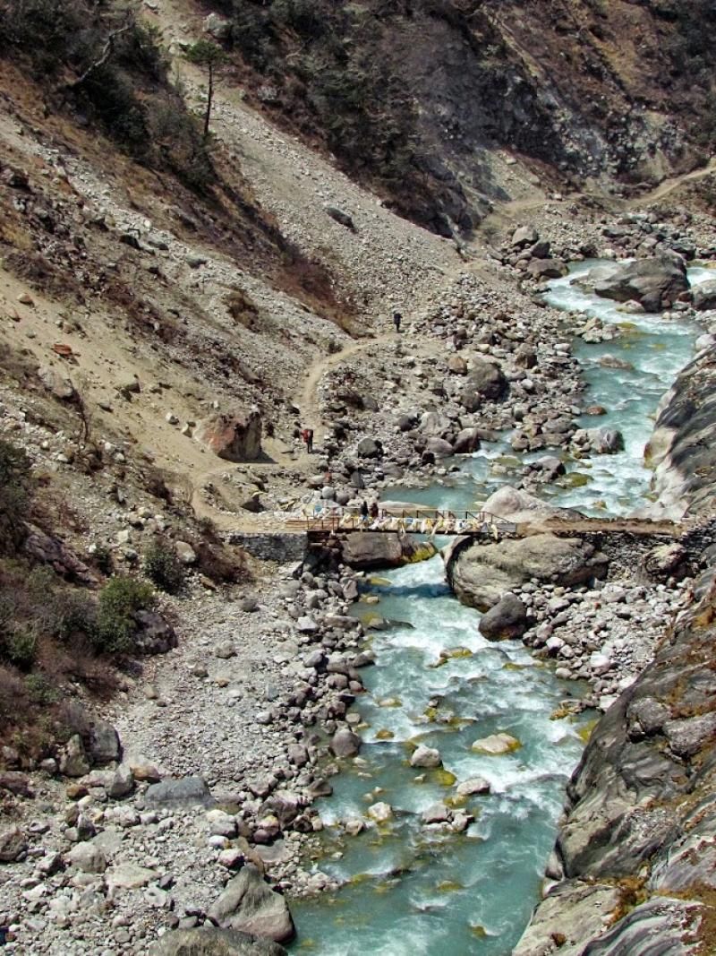 Sonrasında ağır aksak yoluma devam edip yeni yapılan üst köprüden geçerek Namche-Phakding arasındaki beş köprünün ilkinden geçmiş oldum. Yol genelde sakindi. Fakat işin ilginç tarafı daha önce üç kez geçtiğim yolları kesinlikle tanıyamadım ve emin olmak için ikide bir karşılaştığım insanlara Phakding yolunda olup olmadığımı sordum. Rinji buluştuğumuz anlardan birinde istersem bugün Lukla’ya devam edebileceğimizi söyledi. Boşver, dedim. Eğer Katmandu’ya döndüğümde uçuş tarihini öne alamazsam aşağılarda 1 gün daha fazla kalmaktansa dağda olmak daha iyi düşüncesiyle buna karar verdim.