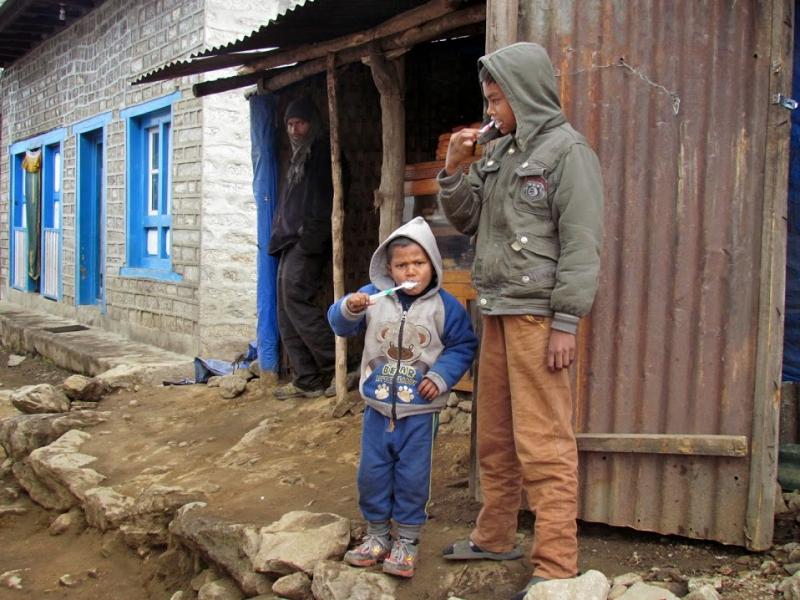 Üç tane bıcırık gelip yan masama oturdu. Neyse ki onlar birazcık bir gülümseme kondurdu yüzüme. 8-9 yaşlarında bir kız, iki tane de 5-7 yaşlarında erkek çocuklu İngiliz bir aile… Sonradan Tengboche’ye kadar gideceklerini öğrendim. Ne kadar güzel! Bu yaşlarda böylesine müthiş bir deneyim yaşıyorlar. Harika! Aileyi kutlamak gerek…