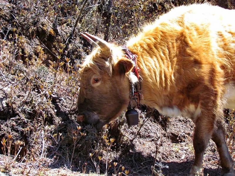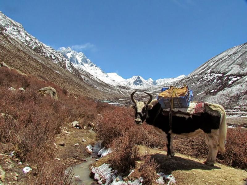 Namche’ye giden yoldaki son köprüyü geçip diğer tarafında Furwa’yı bekleme plânım suya düştü. Adam yemeğini de yemiş olarak, köprüye girdikten az sonra bana yetişmeye başladı. Köprünün ortasına yaklaştığımda baktım karşı taraftan yaklar (Tibet sığırı) köprüye girmek üzereler… Eyvaaaah! Bu yaratıklar lâftan anlamazlar, atarlar adamı köprüden aşağı! Bu yükseklikten uçmak da hiç hoş olmaz hani… Can havliyle koşmaya başladım. Karşı tarafa yaklaştığımda artık bacaklarımda derman kalmamaya yüz tuttu. Son bir gayretle köprünün son metrelerini bitirip yakların yolundan uzağa attım kendimi. Tam zamanında! Ama Furwa ile bir taşıyıcı, yak sürücüsünün engel olamaması sonucu köprü üzerinde iki yakla burun buruna kaldılar. Dur durak anlamıyor namertler!