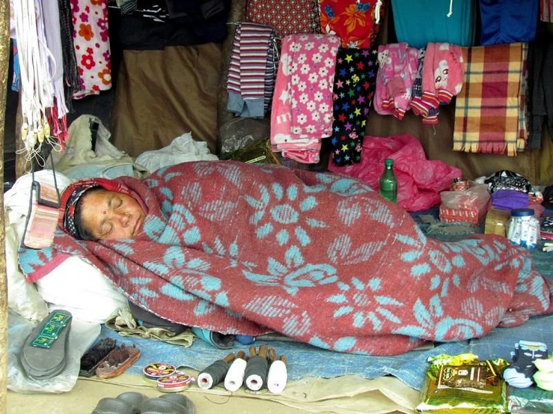 Hava kapalı ve yağışlı olduğu için biraz serin. Ben de bütün polarlarımı ve uzun kollularımı Katmandu’da bıraktım. Üşüyorum biraz. Akşama doğru daha da soğuk olabilir kaygısı ile taksiyi ve Rinji’yi yolladıktan sonra otelden ufaklık şeker bir oğlanla ince bir polar bakmak üzere çarşıya indik. Çok hayâl kırıklığına uğradım! Ne çarşısı yahu? Ufak tefek 3-5 tane dükkân var. Doğru dürüst de benim arzu ettiğim gibi bir şey yok. Burası aklı sıra çok tanınan ve turistik bir yer… Şaştım kaldım! Bunun üzerine ben de, “Amaaan… Biraz üşüyeyim. Ne olur yani? Çok zorlanırsam erkenden yatağa girer ısınırım. Boşver poları…” diyerek bu sevdadan vazgeçtim. İyi ki de vazgeçmişim. Şu anda ara ara çıkan güneş acı bir şekilde yakıyor. Herhalde dağda ve yüksekte olduğumuzdan…