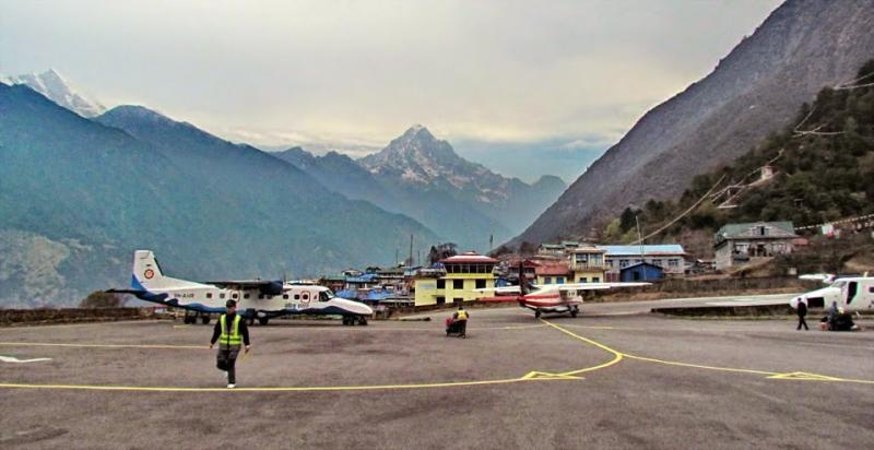 İç hatlar yolcu salonu her zaman olduğu gibi çok hareketli… Çantaları teslim edip bekleme salonuna geçtik. İşler aksamadan yürüyor. 06.30’da kalkan uçağımızda dağların görüntü vermediği kapalı bir havada (neyse ki bizim rota açık), 30-40 dakika sonra Lukla’ya alkışlar arasında indik. Yolcuların çoğu İtalyan’dı, dolayısıyla alkışlar… Yolda, Lukla yakınlarına geldiğimizde biraz aşırı sarsma şakası yaptıktan sonra kaptanlar, gayet başarılı bir şekilde bizi hedefimize ulaştırdı.